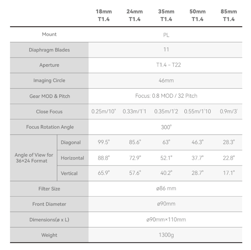 ( NEW ) NISI Aureus Prime Set ( PL-Mount ) T1.4 18mm, 24mm, 35mm, 50mm, 85mm