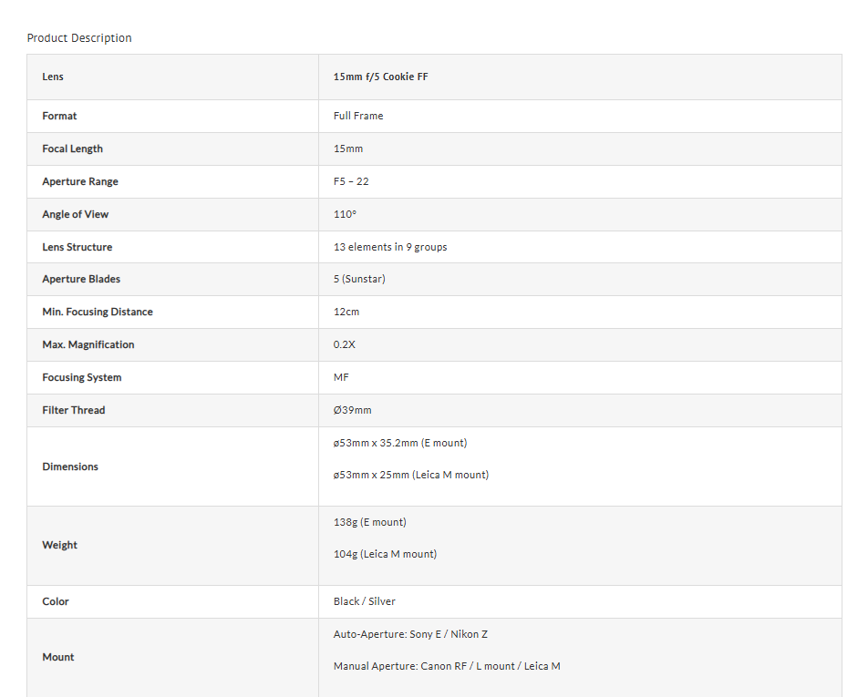 Laowa 15mm f/5 Cookie FF Lens is an unrivaled pancake-style ultra-wide-angle lens. It is just a tiny cookie-sized lens, but contains the capability to capture ultra-wide scene. It is an ideal lens developed for photographers who are looking for a fun go-to lens for their casual photography