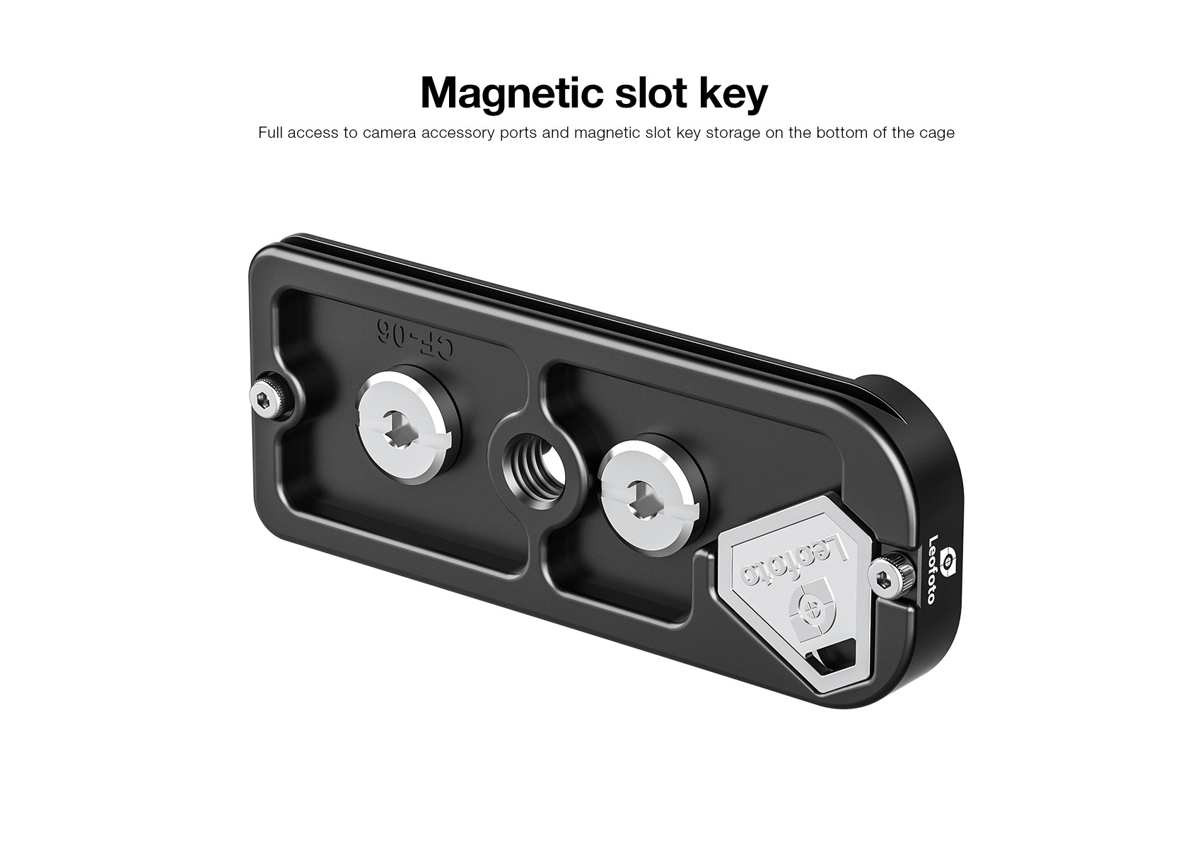 - Two safety stops are located on the bottom of the foot, which prevents accidental lens release when a quick release receiver clamp is partially open
