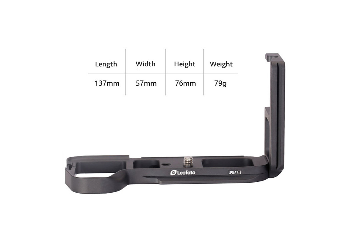The Leofoto LPS-A7II L-Bracket for the Sony A7II or A7RII system camera supports the camera's entire base plate and,