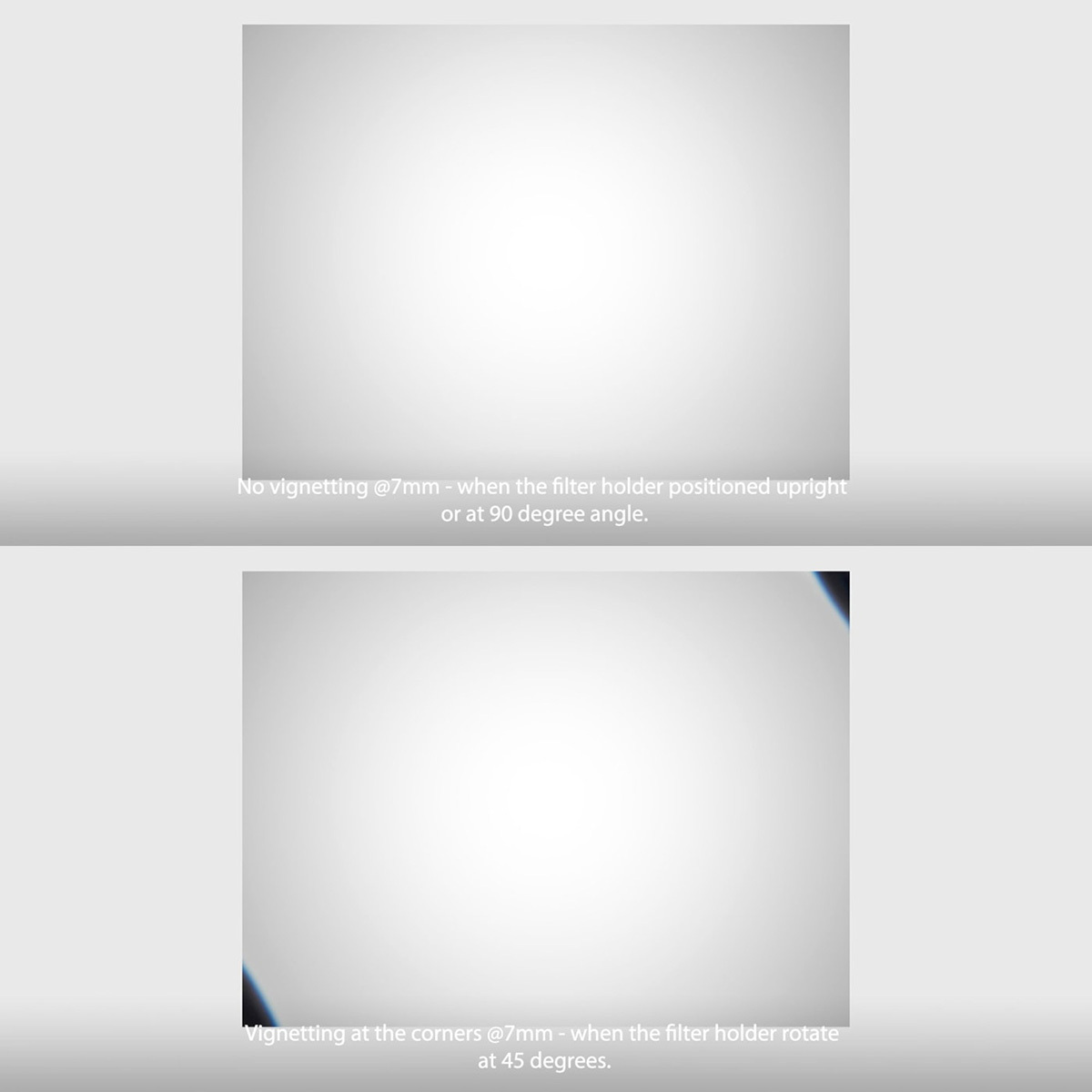 - No Vignetting with the holder in the upright position, some vignetting with the holder not upright.