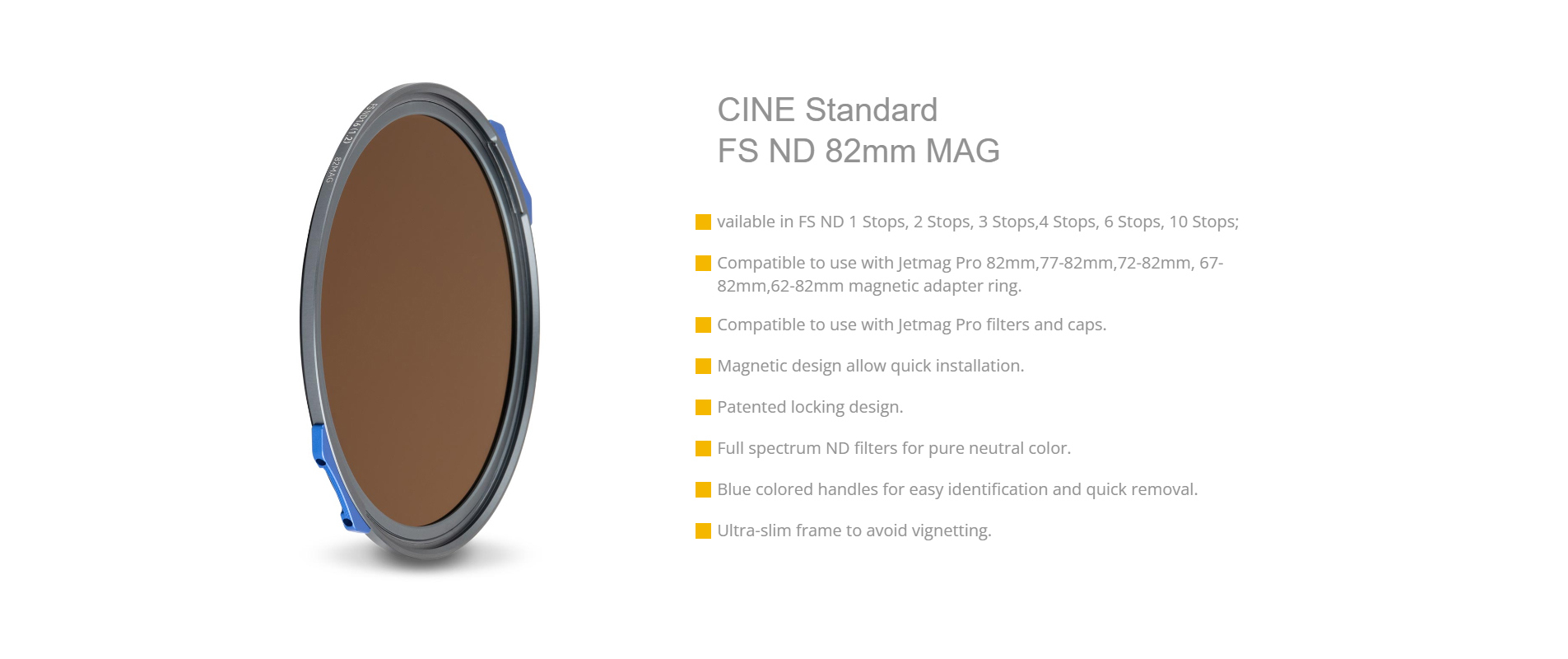 NiSi JetMag Pro FS ND2 (0.3) 1 Stop Filter is part of NiSi’s groundbreaking JetMag Pro system, designed for photographers and videographers who require precision, convenience, and top-tier image quality. Offering 1-stop light reduction, the FS ND2 is perfect for a slight light reduction in bright environments while maintaining the integrity of your image’s color and sharpness. With Full Spectrum Neutral Density (FSND) technology, this filter ensures pure neutral color without any color cast, preserving the natural vibrancy and accuracy of your shots.