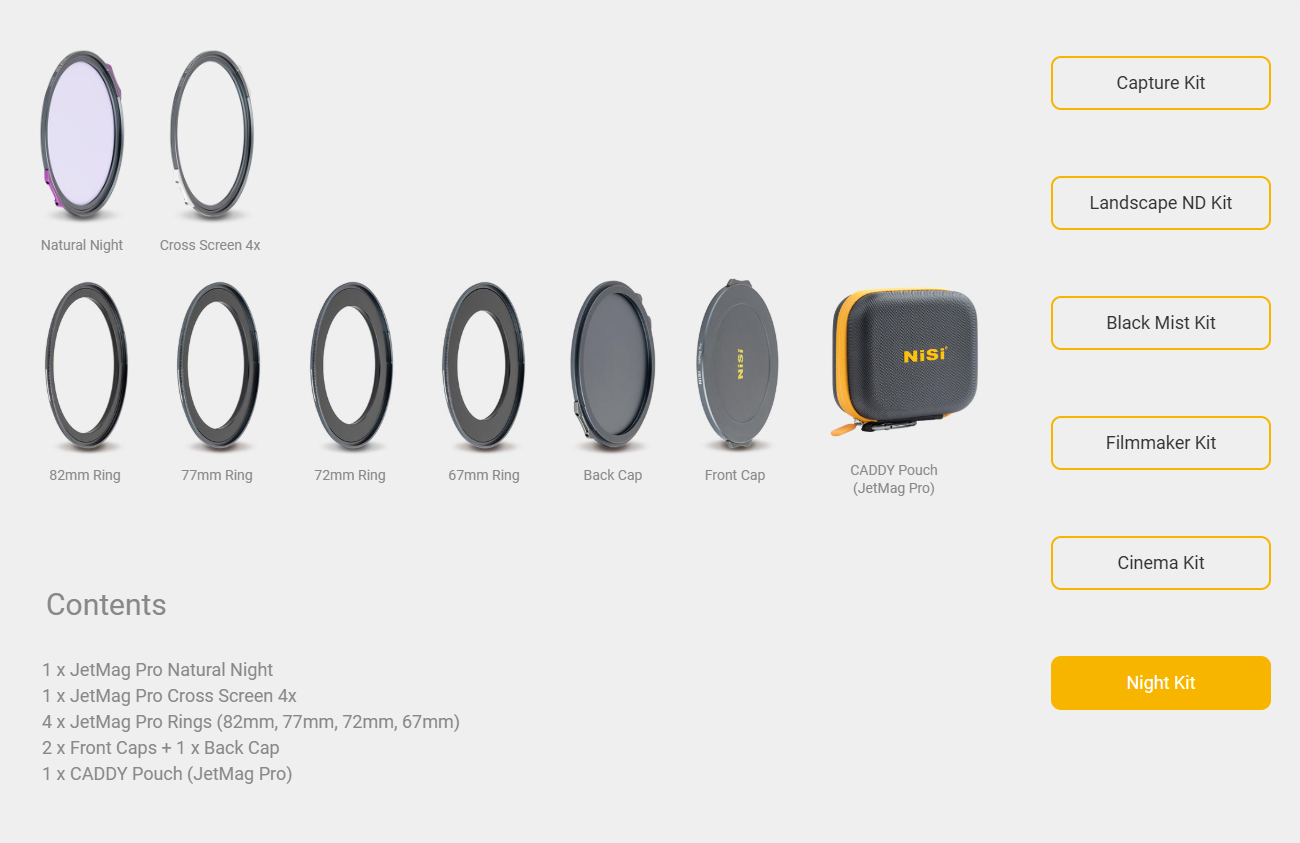 Whether you’re photographing the beauty of the night sky, creating dramatic urban shots, or experimenting with light effects, the NiSi JetMag Pro Night Kit is the ultimate tool for professional-quality night photography and videography.