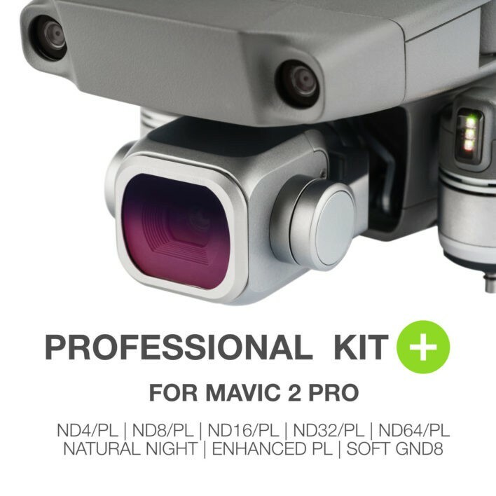 – Professional Kit including ND4/PL, ND8/PL, ND16/PL, ND32/PL, ND64/PL an Enhanced Polariser, Natural Night and Soft GND8 filter for Mavic 2 Pro
