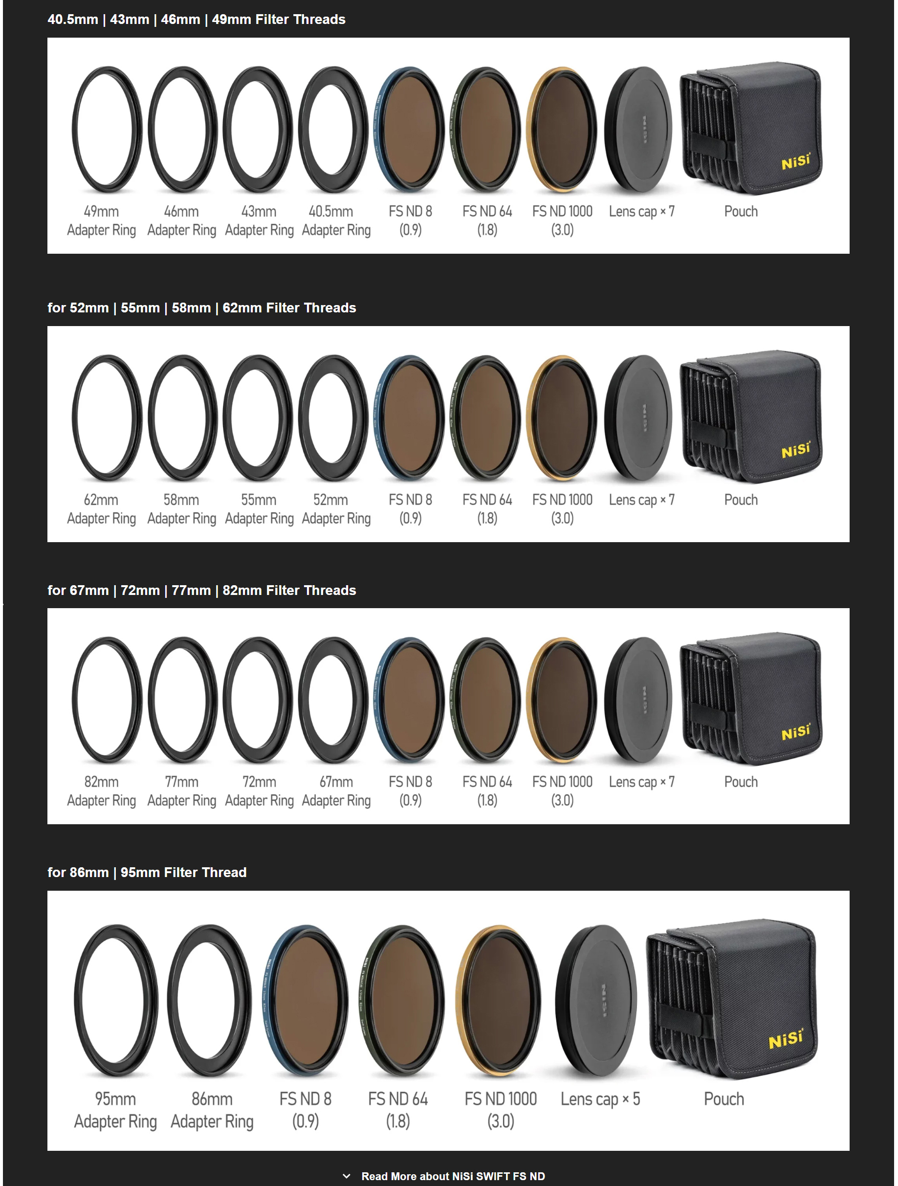 - Each FS ND Filter features a unique color for easy identification