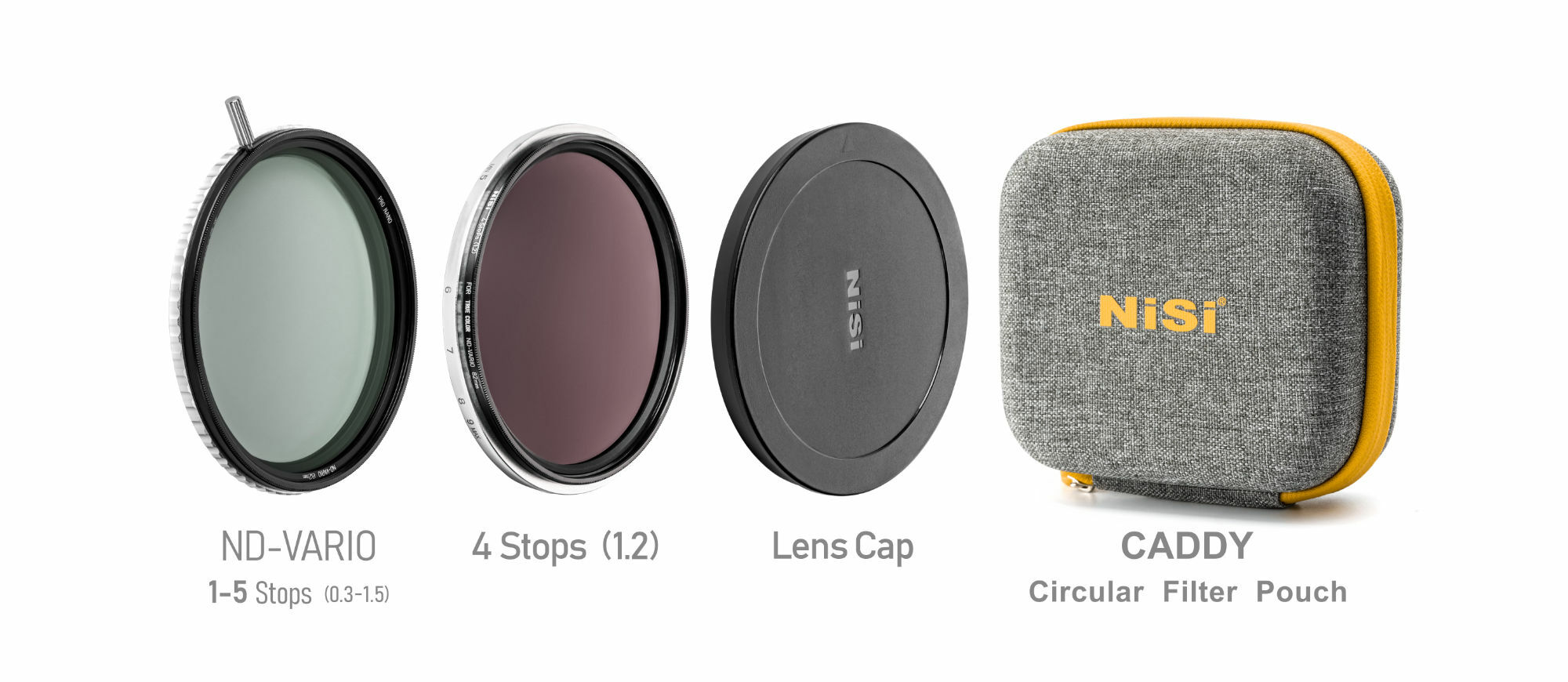The NiSi Swift True Color VND Kit 1-9 stops (1-5 Stops VND + 4 Stop ND) includes a NiSi True Color 1-5 Stop VND and an ND16 (4 Stop) ND that can be combined to cover a range of 1-9 stops, making this one of the most versatile variable ND kits on the market.