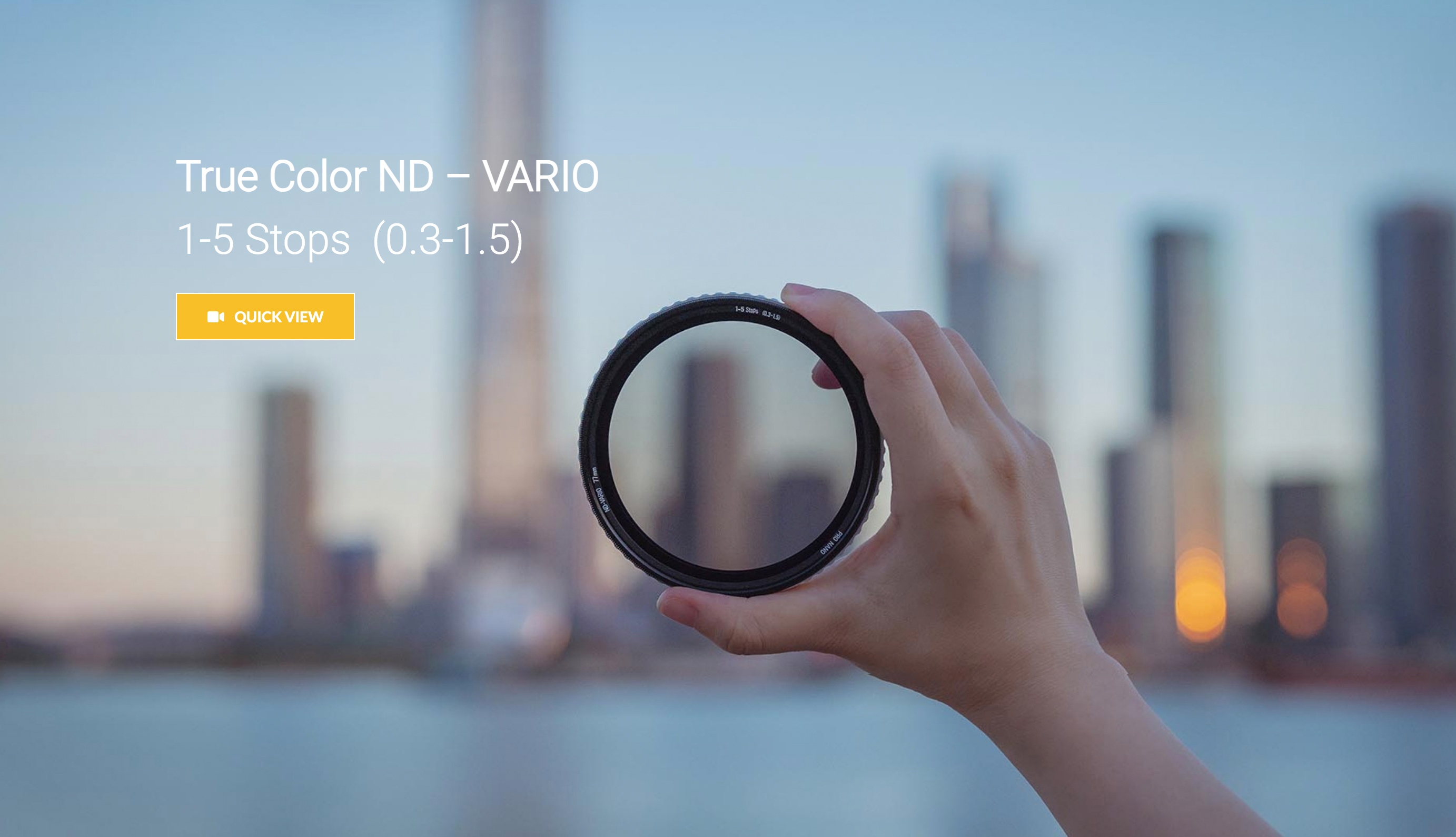 The Variable ND offers True Color that avoids color shift seen in other Variable filters. The NiSi True Color ND-VARIO Pro Nano 1-5stops Variable ND is made from high-definition optical glass for the best resolution and quality. The glass is coated using the NiSi Nano coating providing a waterproof, oil-proof, and anti-reflective coating to avoid ghosting and reflections. The filter ring is made from high-quality aluminum creating a very light and strong filter.