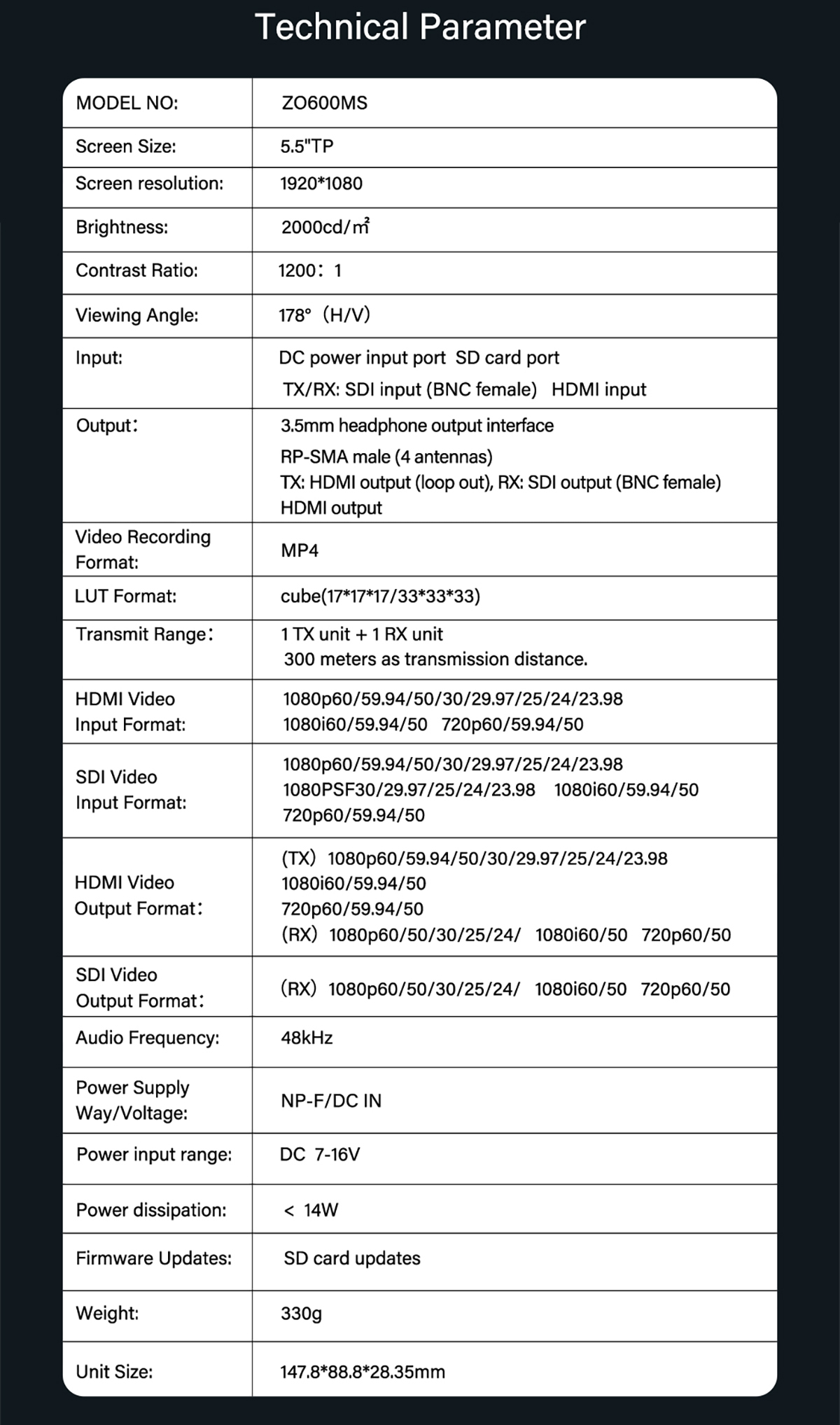- Brightness: 2000nits